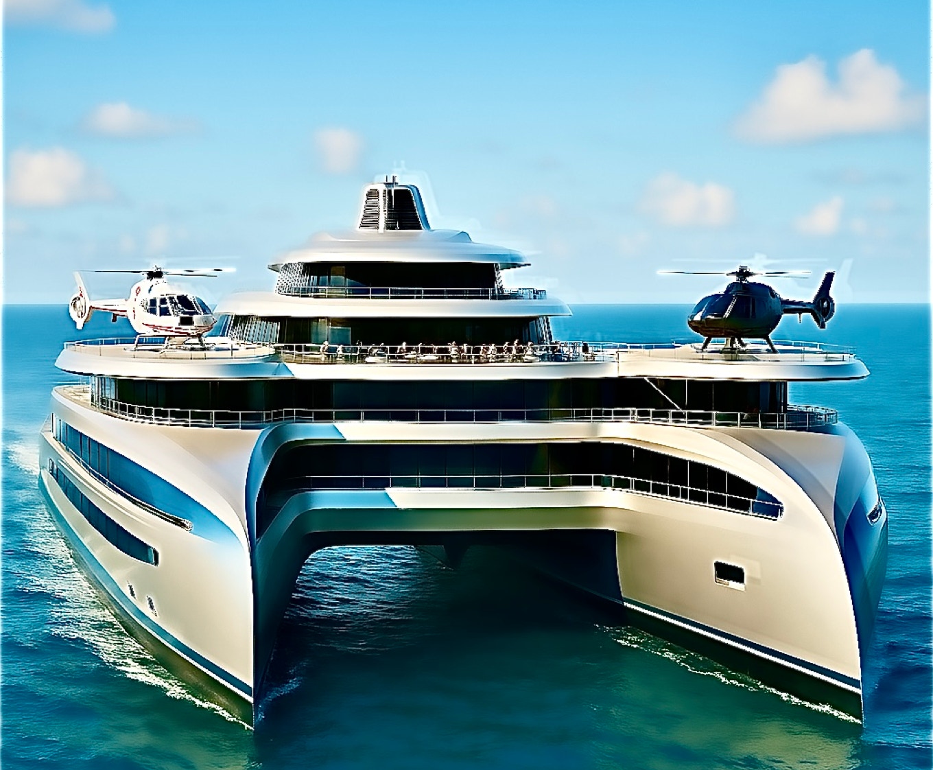 Navallis is a groundbreaking mega catamaran concept that fuses maritime mastery, world-class hospitality, and cutting-edge engineering into a single, iconic platform. Stretching 100 meters in length, this floating masterpiece is more than a vessel — it is a destination. Designed for the world’s elite, it offers an unmatched blend of leisure and investment potential, featuring a luxury hotel, fine dining restaurants, a panoramic rooftop lounge, a world-class spa, a high-end casino, dual helipads, and vibrant social spaces.